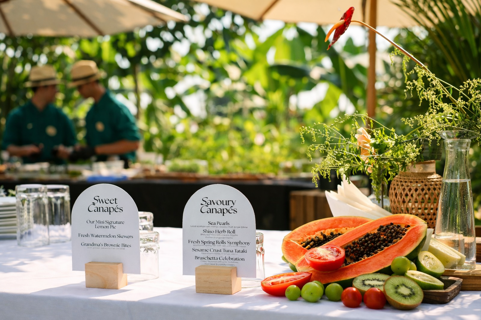Instead of seated dinners, our chefs and service team circulate with beautifully crafted canapés and small plates — allowing guests to interact naturally while enjoying food